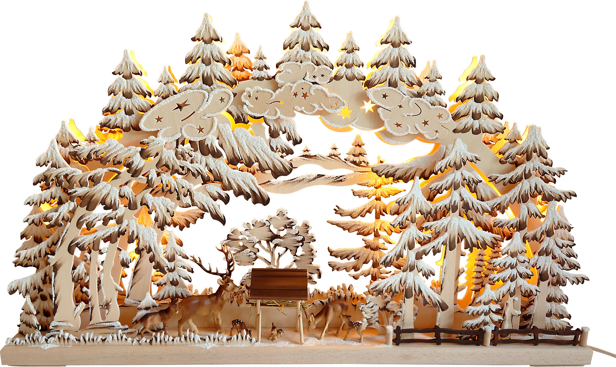 RATAGS Holzdesign 3D-Schwibbogen Rehe im Wald, groß - mit Raureif