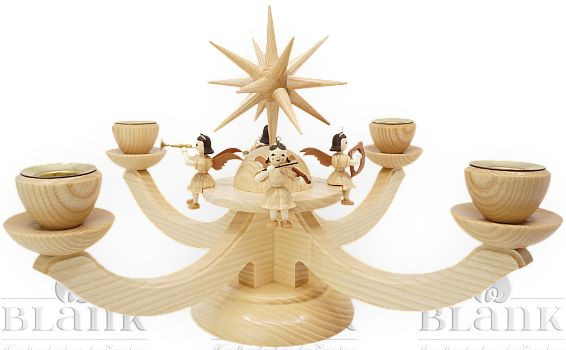 Blank Adventsleuchter mit 4 sitzenden Engeln, natur
