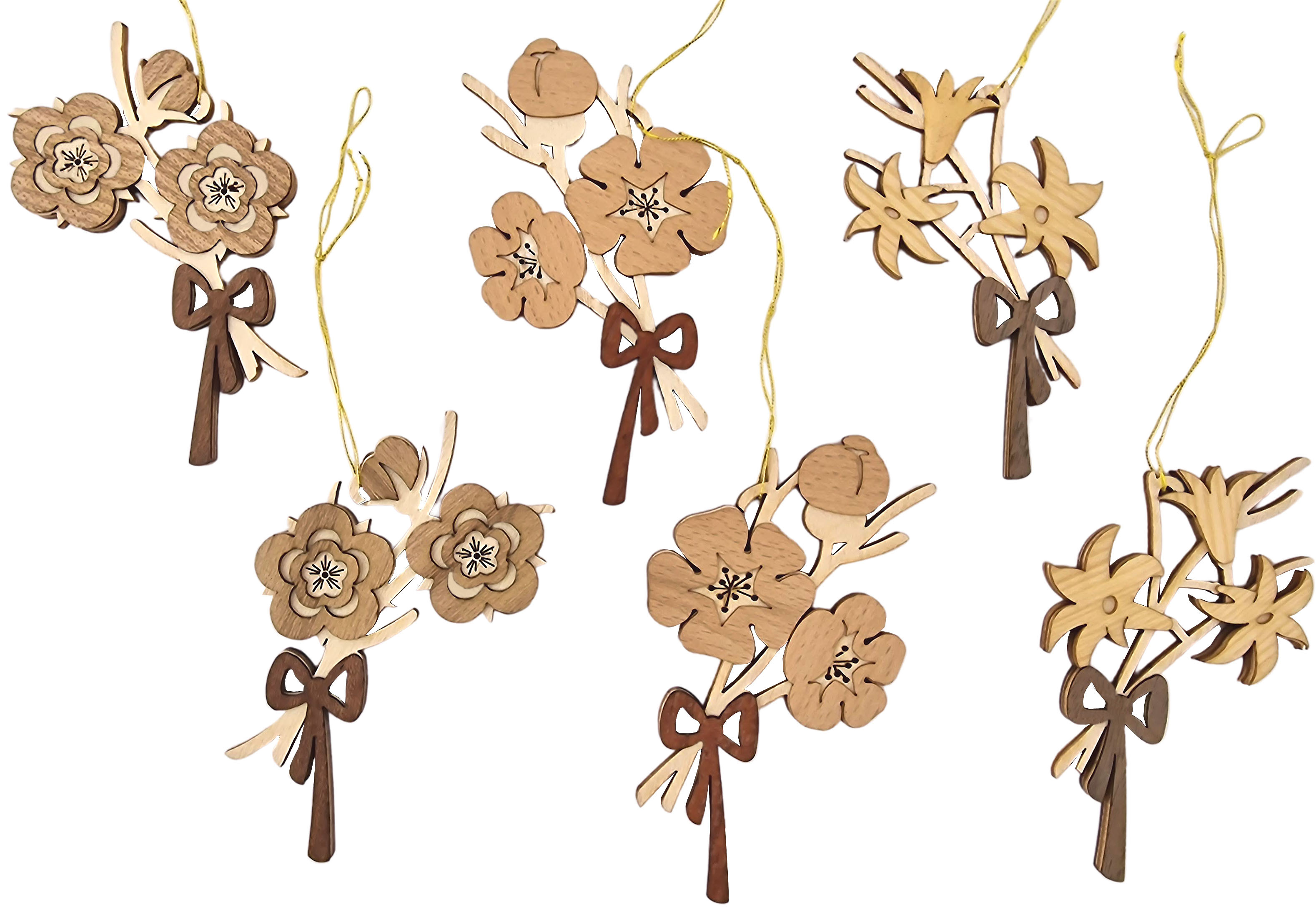 Dieses Set besteht aus 2x3 Zweigen mit verschiedenen Blüten. Am Stiel sind die Zweige mit Schleifen zusammengebunden.