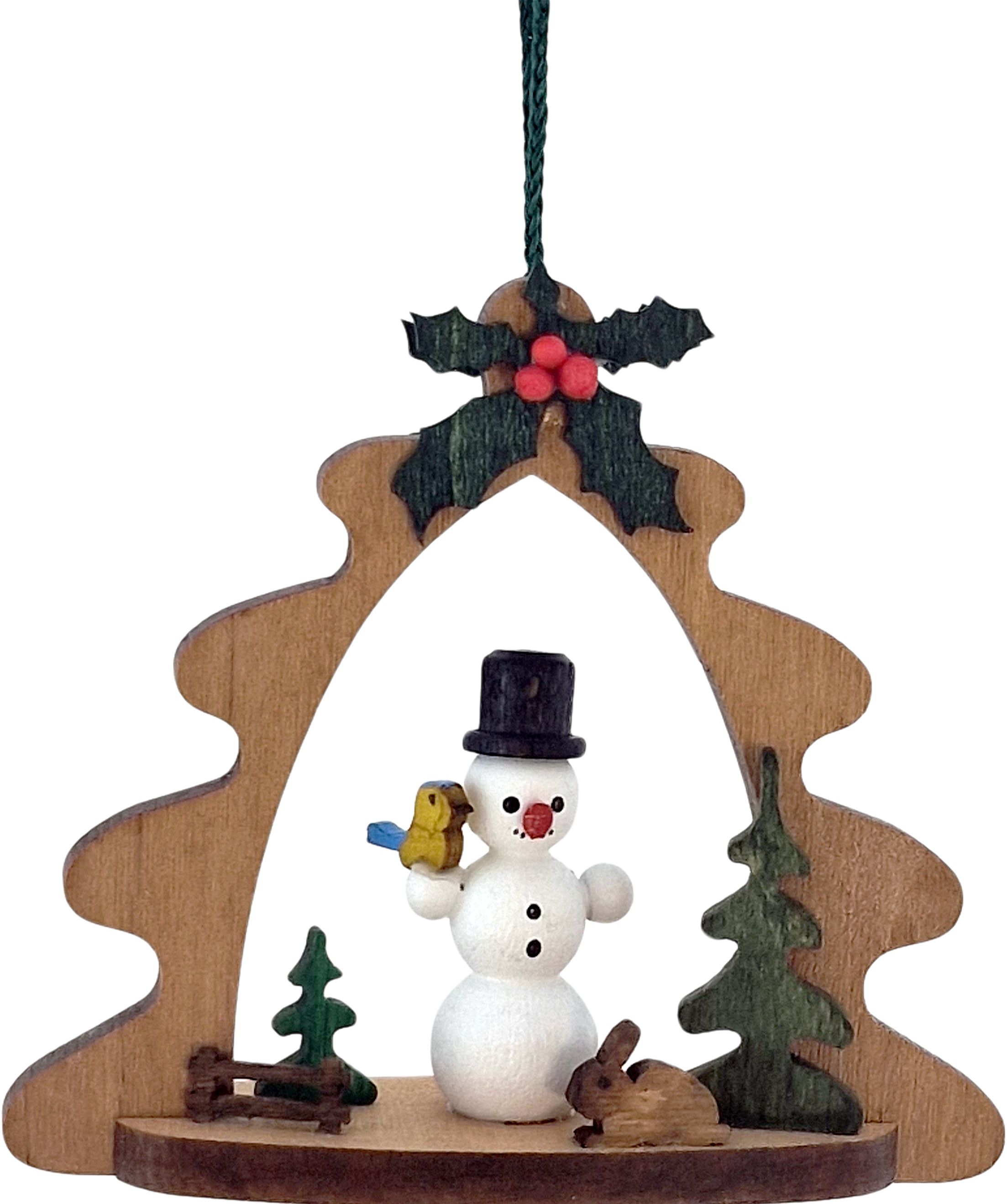 Auf der Platte steht ein Schneemann mit roter Nase und einem Zylinder auf seinem Kopf. Ein Vogel hat sich auf einem seiner Arme gesetzt. Vor ihm steht ein brauner Zaun. Zwei Tannenbäume vervollständigen die Szenerie. Ein Hase sitzt vor dem größeren Baum und schaut zu dem Schneemann.