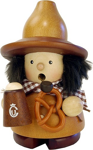 Der Bayer hat sich für das Oktoberfest schick gemacht und ein braun-weiß kariertes Halstuch umgebunden. Eine Brezel und ein Bier hat er sich auch schon geholt. Nebenbei raucht er seine Pfeife.
