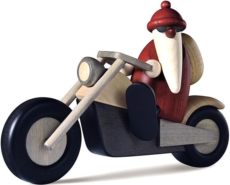 Der Weihnachtsmann fährt auf seinem Motorrad. Er gehört zu der Weihnachtsmann-Serie aus dem Hause Björn Köhler im Erzgebirge.