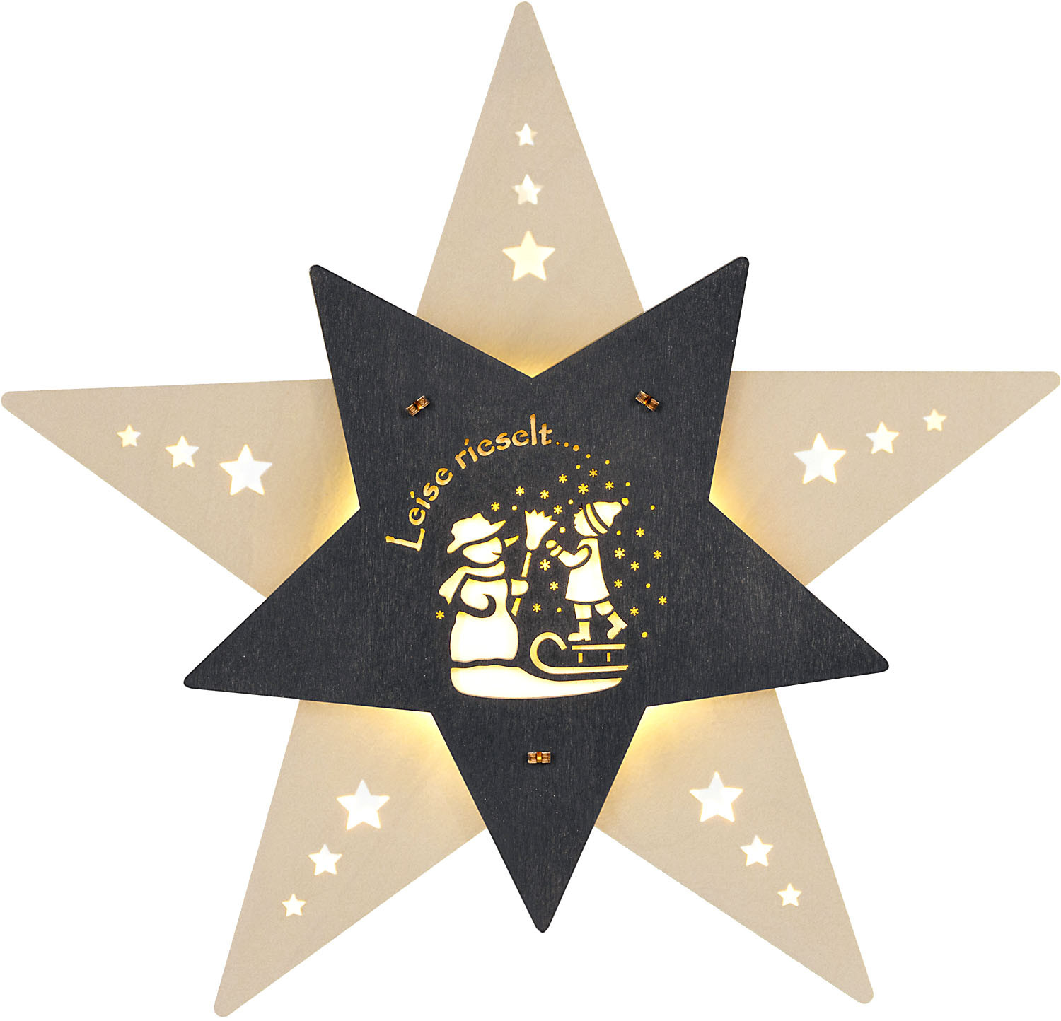 WEIGLA Fensterbild Stern - Leise rieselt der Schnee, weiß/grau, LED