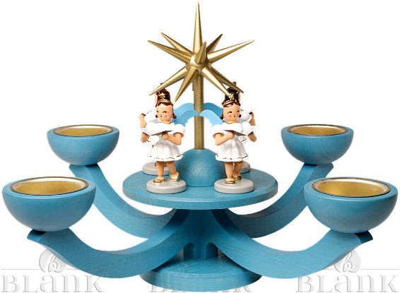 Blank Adventsleuchter mit Teelichthalter und 4 stehenden Engeln, blau