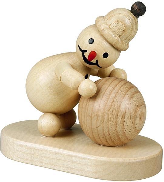 Der Junior rollt eine große Schneekugel vor sich her. Eine Bommelmütze hat er sich auf den Kopf gesetzt.