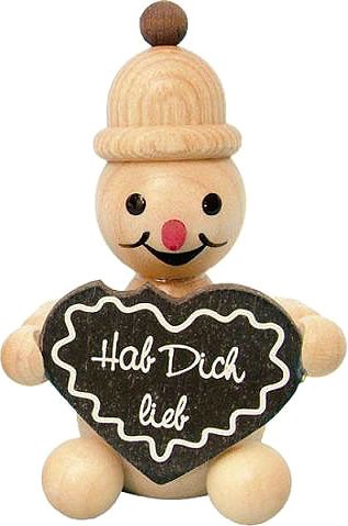 Drechslerei Volkmar Wagner Schneemann Junior - mit Lebkuchenherz, sitzend