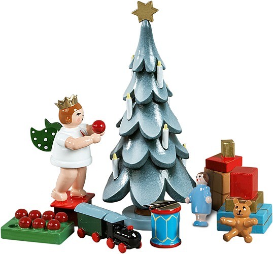 Massivholz, Größe: 6,5 cm, - das Drumherum bitte separat bestellen: Engel mit Baumkugel und Kugelkiste KDE28216, Zubehör bestehend aus 2 Geschenkpaketen, Trommel, Bär, Puppe, Eisenbahn KDE28604
