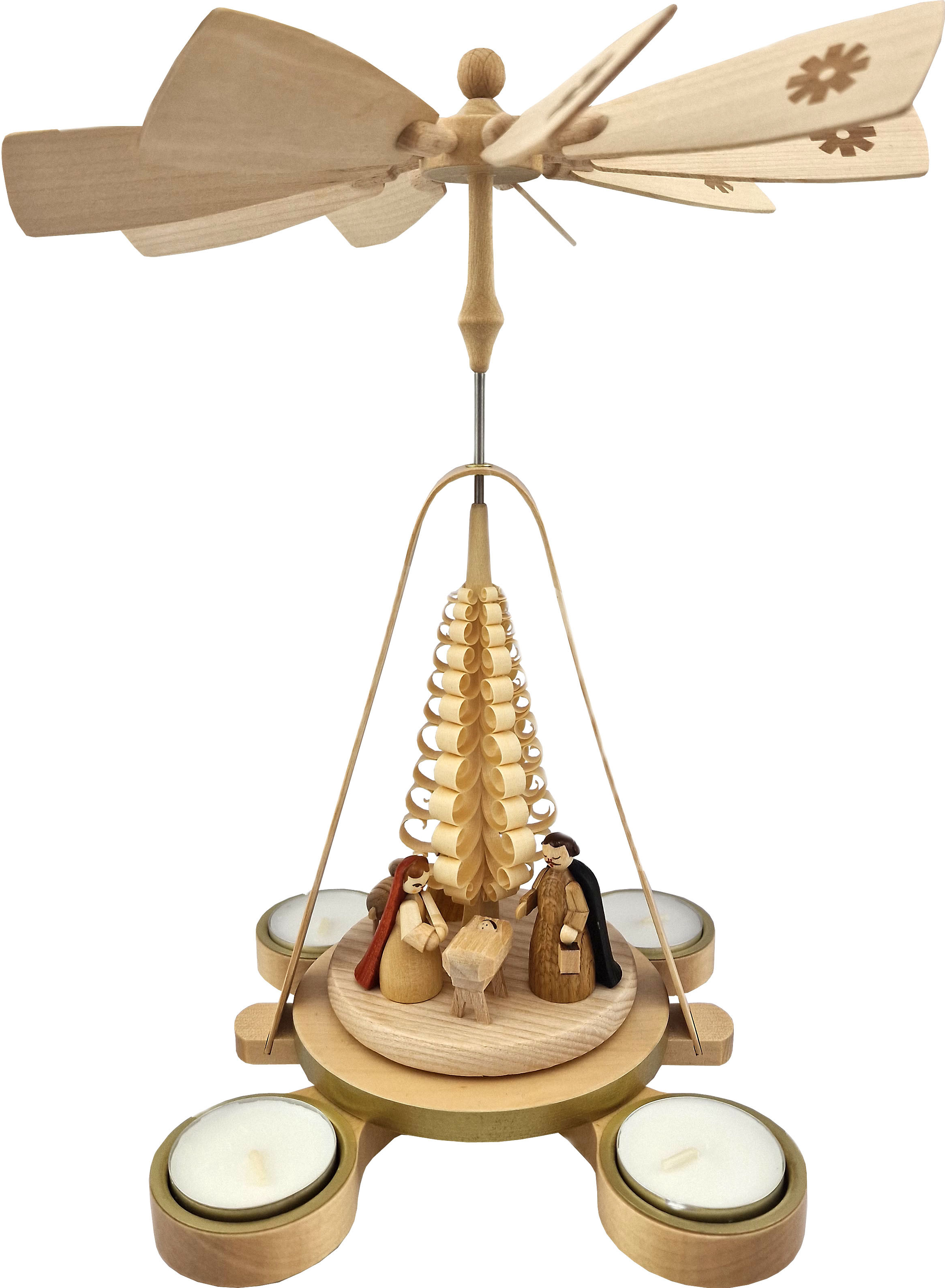 Pyramide für Teelicht mit Heilige Familie und Schäfer mit Schafen in natur.
