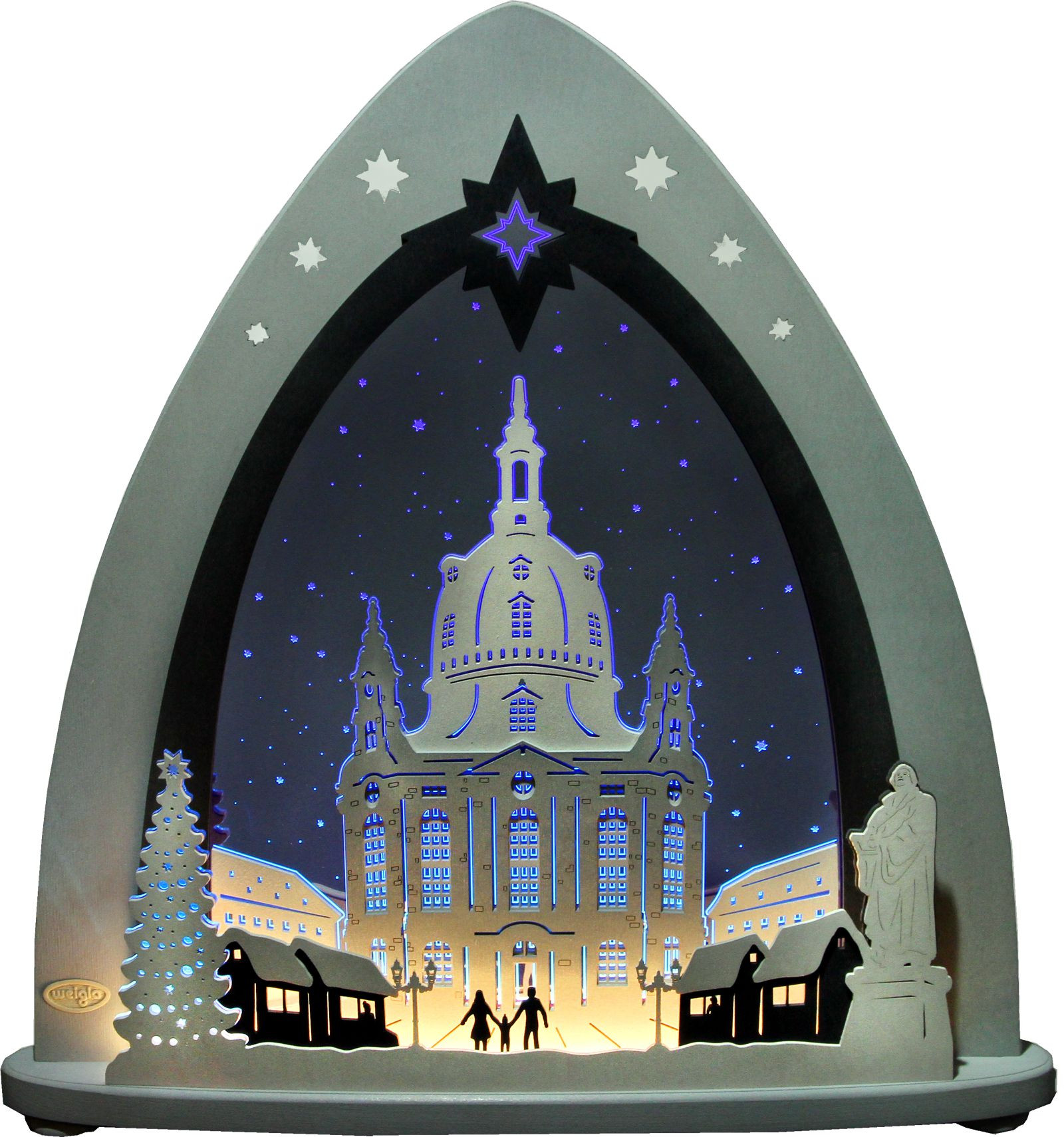 Der Weihnachtsbaum ist das Highlight dieser Lichterspitze. Er wird separat beleuchtet, da sich unter ihm ein extra LED-Strip befindet.