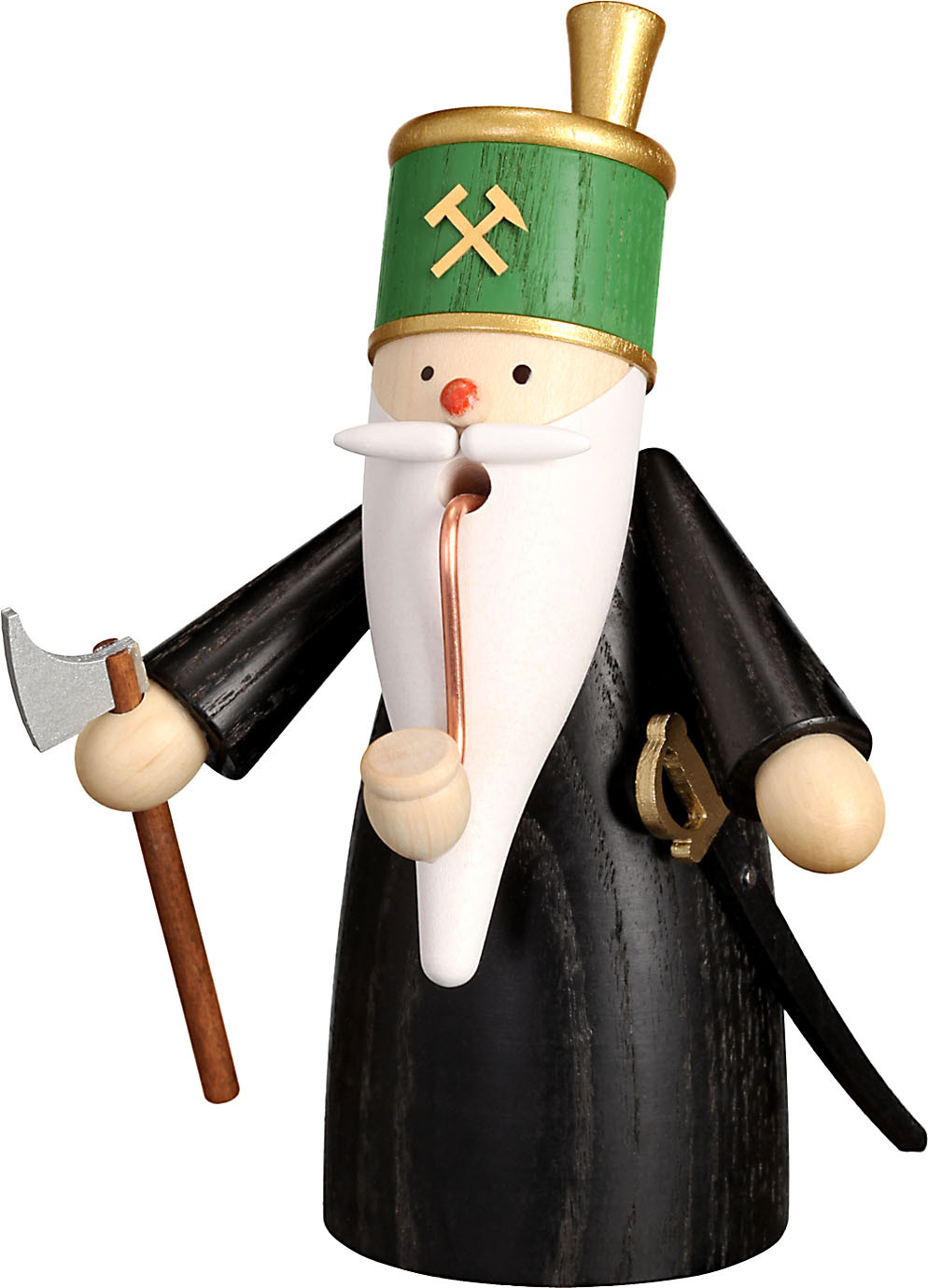 Der Wichtel passt als Offiziant auf seine Kollegen auf. Er sorgt dafür, dass sie die richtigen Wergzeuge haben. Gerade bringt er eine Bergmannsaxt zu seinen Kollegen.