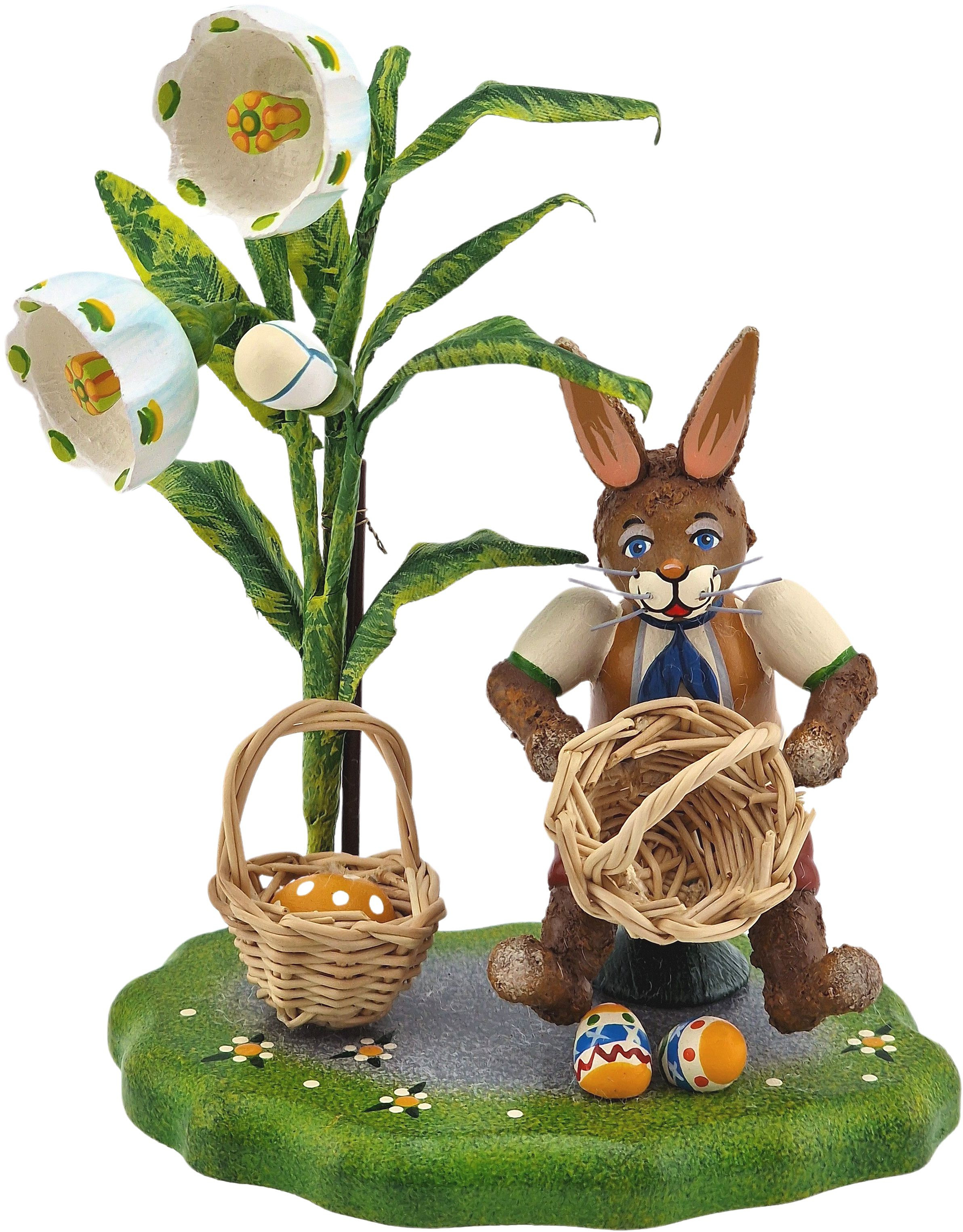 Damit die Eier besser transportiert werden können, stellt der Hase kleine Osterkörbchen her.