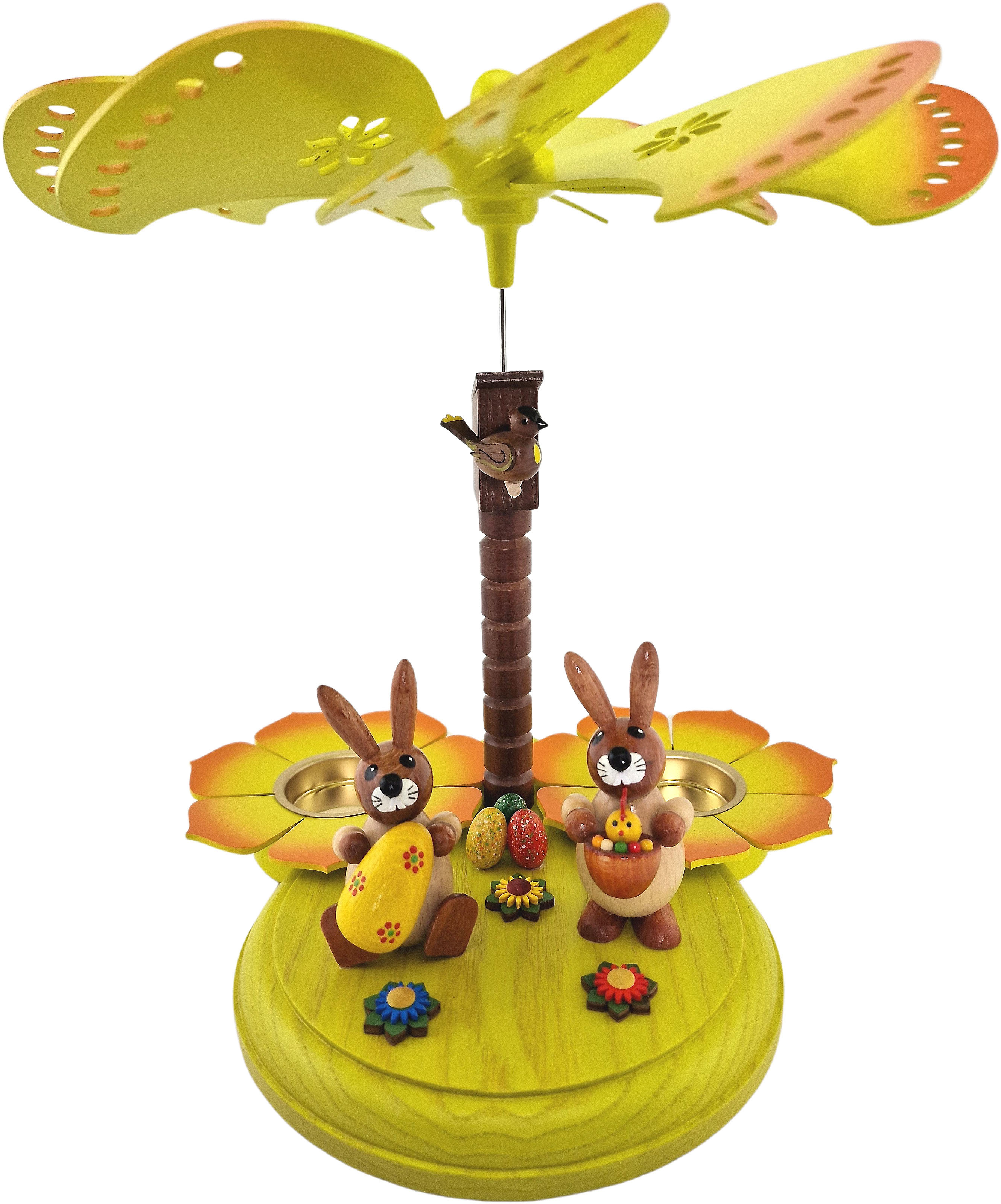 HoDreWa Legler Osterpyramide bunt, 2 Hasen - Ei und Korb