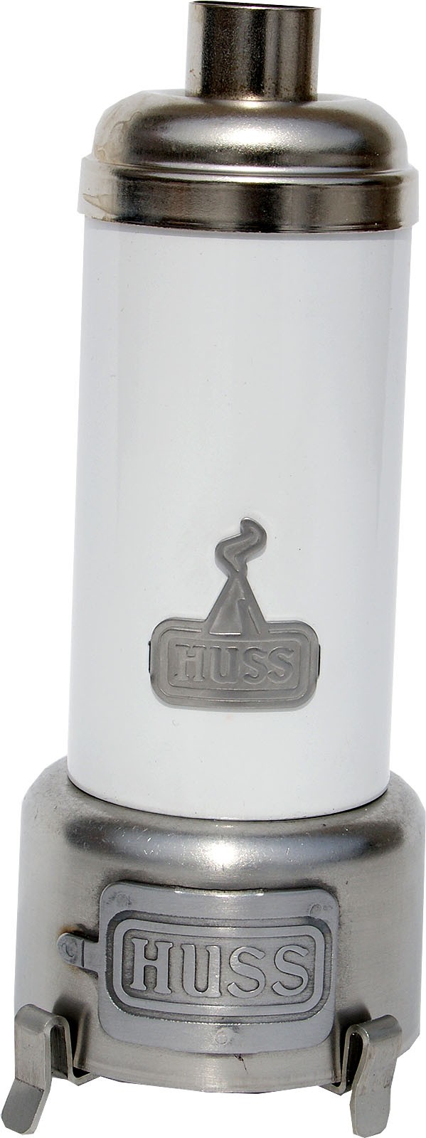 Eine Räucherfigur aus dem Sortiment der Firma HUSS ist "Dr Bodufm". Als Vorbild wurde der Badeofen genommen, der in früheren Jahren in fast jedem Haushalt vorzufinden war. Er hat eine runde Form und vollständig aus Metallteilen gefertigt. Dr Bodufm besteht aus 7 Einzelteilen. Zuerst kommt das Unterteil mit seinen etwas abstehenden Füßen. In das Unterteil stellt man den Aschetiegel. Auf die 4 Füße kommt jetzt eine runde Blechform mit dem dem HUSS-Firmenschriftzug. Oben sind 3 Zacken angebracht auf die jetzt das runde, an beiden Seiten offene Rohr gesteckt wird. In diesem Teil wurde früher das Wasser erhitzt. Auch hier ist das Firmenlogo erkennbar. Jetzt wird eine kleine Abdeckung auf das obere Ende des Rohrs gelegt. Diese Abdeckung hat in der Mitte ein Loch. Hier kommt ein weiteres, kleineres, Rohr hinein. Dieses hat am unteren Ende 3 nach innen oben zeigende Zacken, die als Halterung für die Räucherkerzen dienen. Zum Schluss kommt noch eine weiter Abdeckung oben drauf, die in der Mitte eine Öffnung für den Rauchabzug hat.