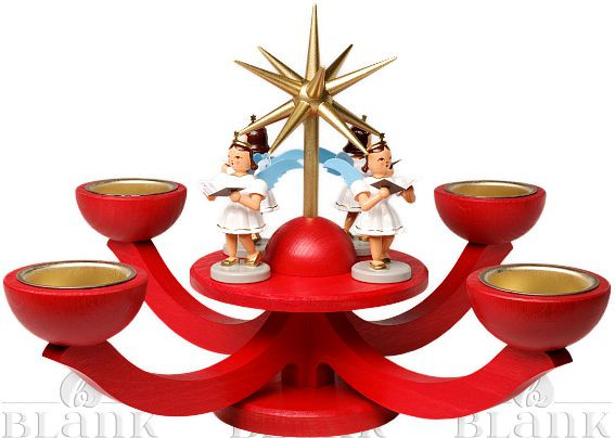 Blank Adventsleuchter mit Teelichthalter und 4 stehenden Engeln, rot