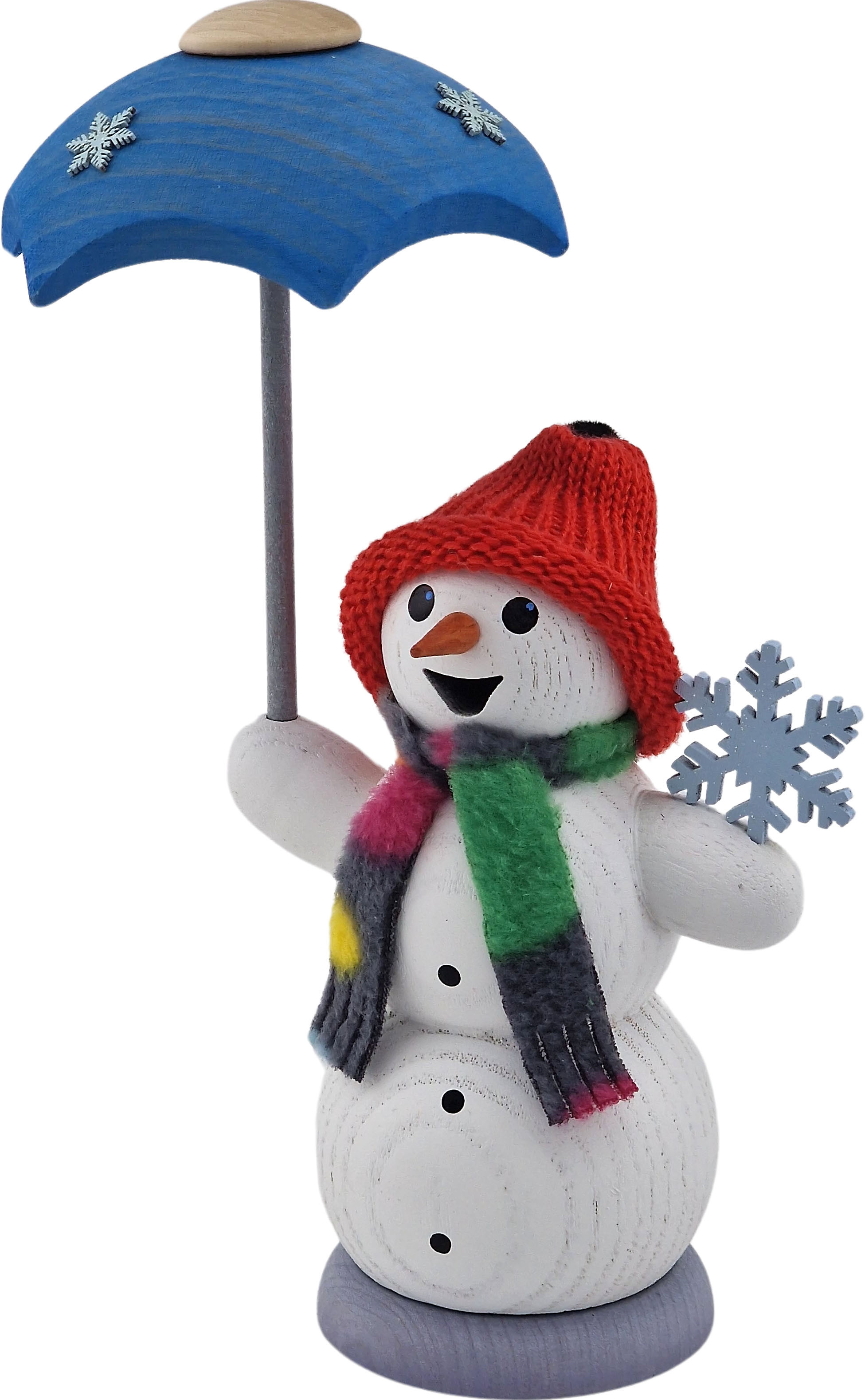 Drechslerei Kuhnert Räuchermann Schneemann mit Schirm