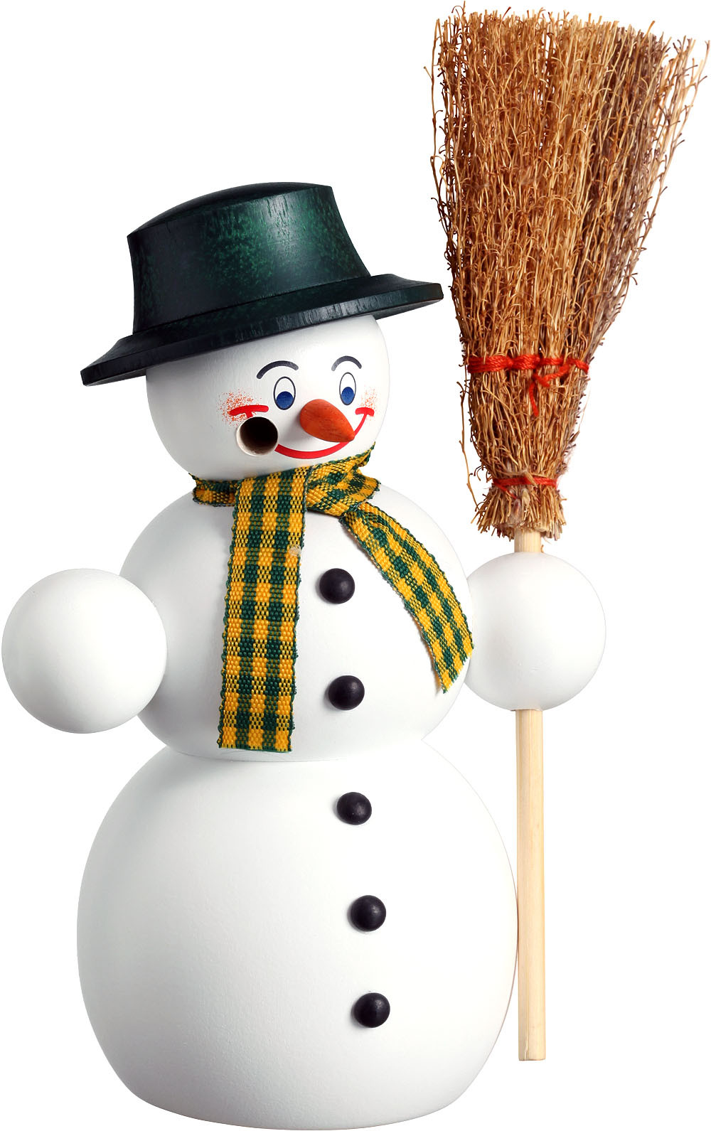Dieser Schneemann gehört zur Serie "freundliche Schneemänner" des Herstellers Seiffener Volkskunst.