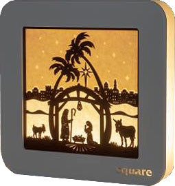 Das Motiv ist beim Standbild auf der Vorder- und Rückseite gleich. Dieses Standbild ist batteriebetrieben und mit einem LED-Strip ausgestattet.