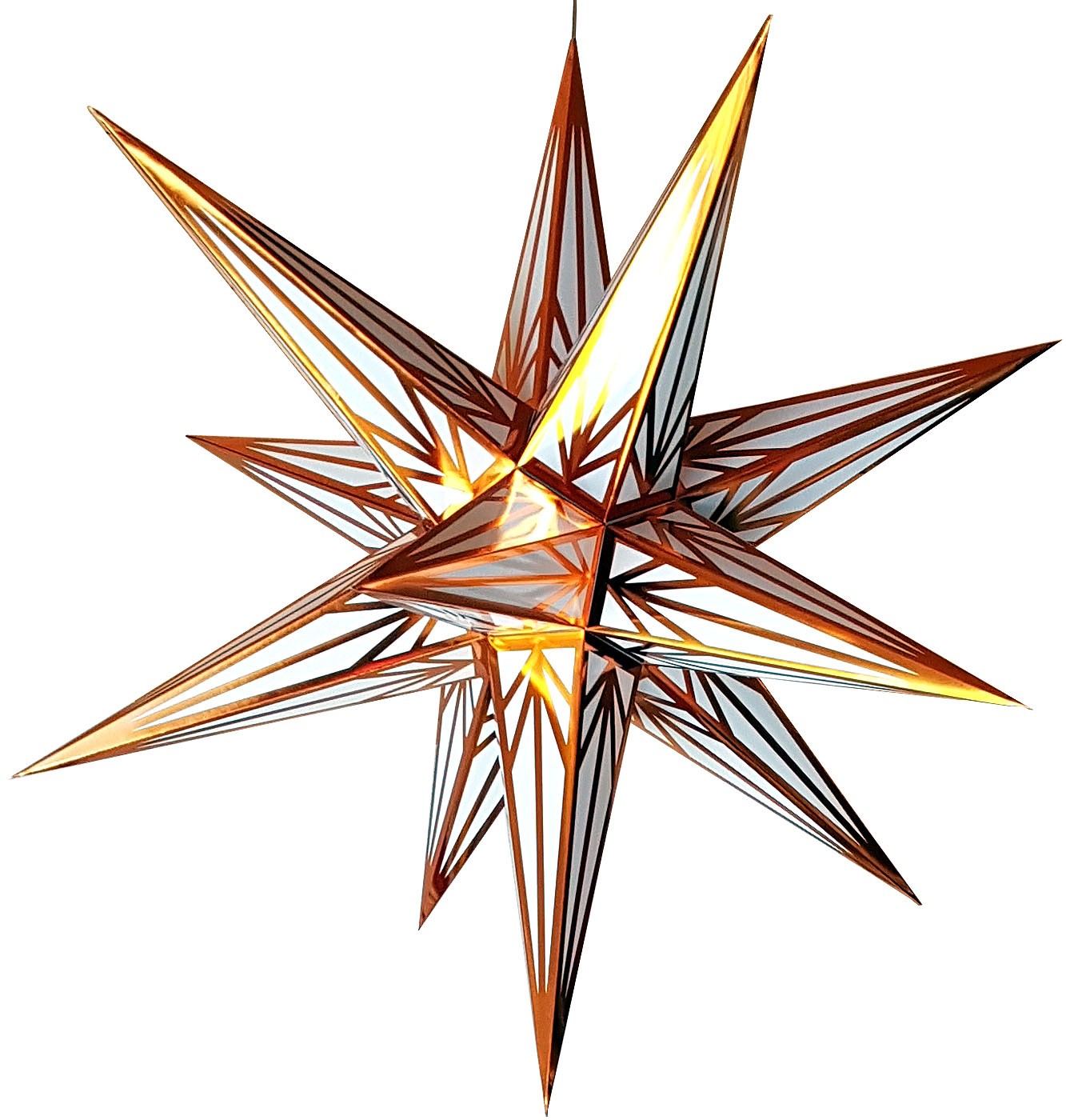 Der Weihnachtsstern ist nur für den Innenbereich geeignet und aus Papier und Kunststoff hergestellt.