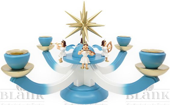 Blank Adventsleuchter mit 4 sitzenden Engeln, farbig
