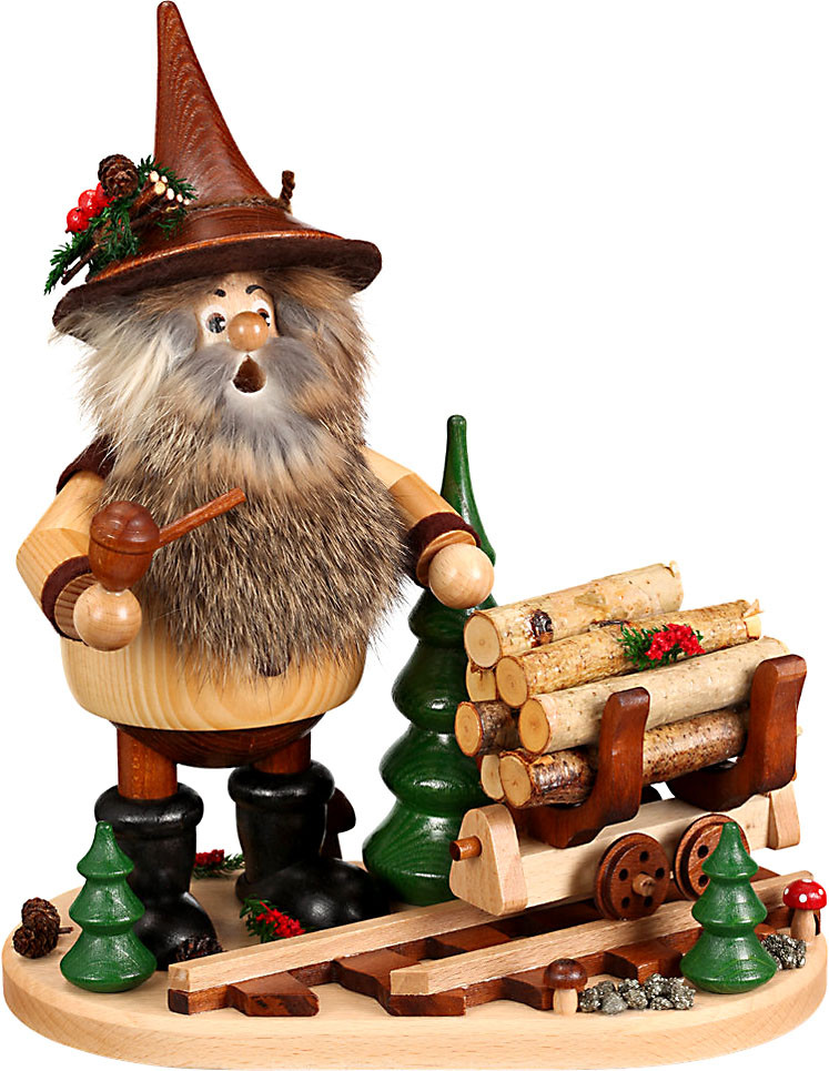 Als es immer schwieriger wurde das Holz zum Abstützen des Gesteins in die Stollen zu bringen, baute der Wichtel Schienen und eine Lore. Damit ging es schneller und er konnte mehr Holzbalken transportieren.
