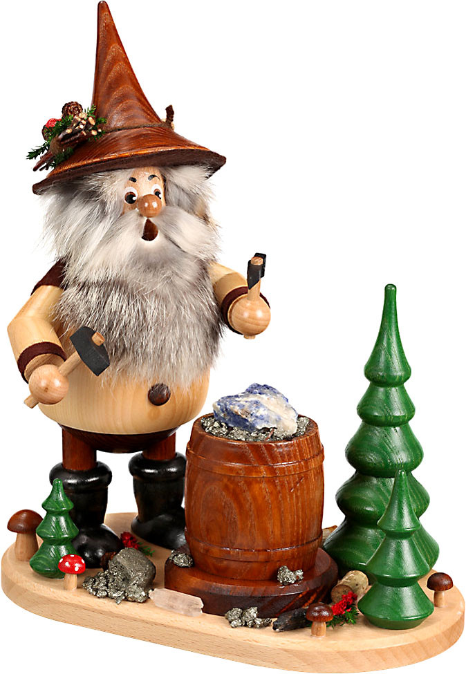 Das Erz war im Gestein. Der Wichtel holte sich anderes Werkzeug und bearbeitete das Gestein. So trennte er Erz und Abraum.