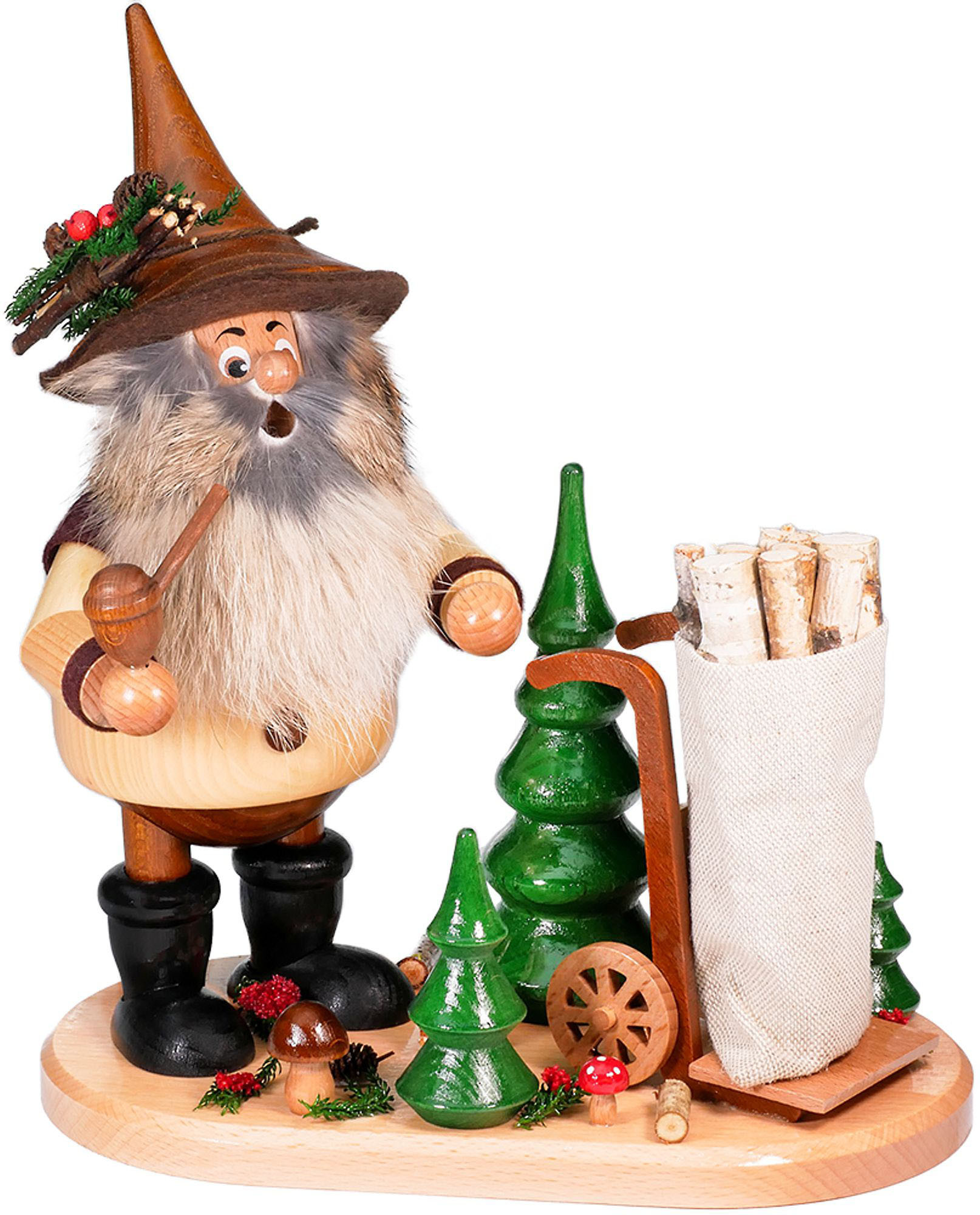 Drechselwerkstatt Uhlig Räuchermann Waldwichtel mit Karre